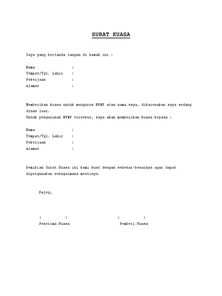| Lihat Contoh Surat Kuasa Pembuatan Npwp |